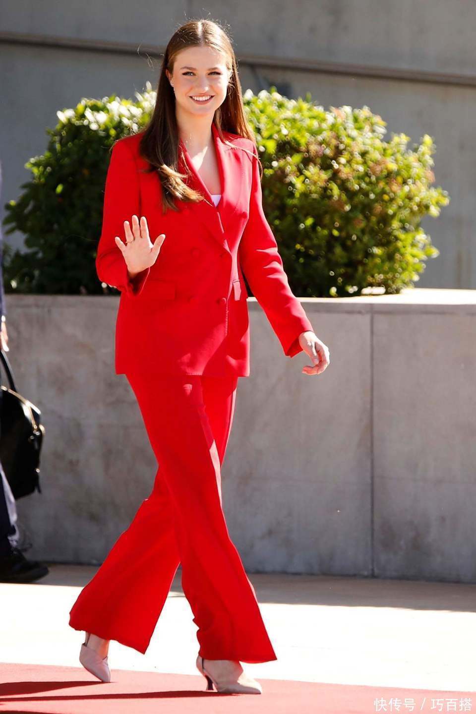 年轻女孩选择西装可以像莱昂诺尔公主一样选择颜色靓丽的,在肤色、皮肤状态、形象气质都是最佳水平的年龄,选择颜色靓丽的西装没有任何违和感。