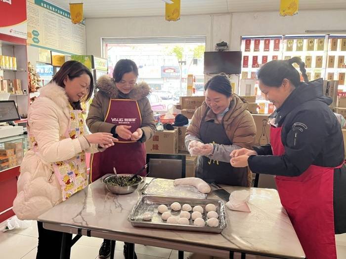 “王姐,我们来陪你过节啦!”3月2日上午,扬州仪征市真州镇一家商店,仪征市烟草专卖局(分公司)巾帼志愿服务队志愿者朱怡带着糯米粉和荠菜馅料等,与店主王秀兰一同揉面、拌馅、包汤圆,庆祝元宵佳节到来。