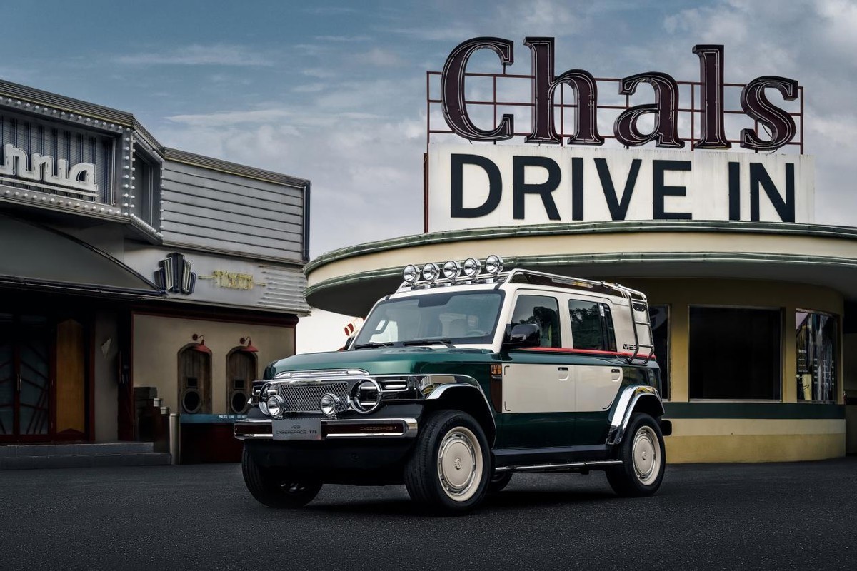 V23复古版的设计灵感源自上世纪70年代的经典SUV,方正的车身轮廓、圆形头灯以及外挂式备胎,都充满了复古韵味。但走近细看,你会发现它的每一个细节都经过现代工艺的重新诠释。