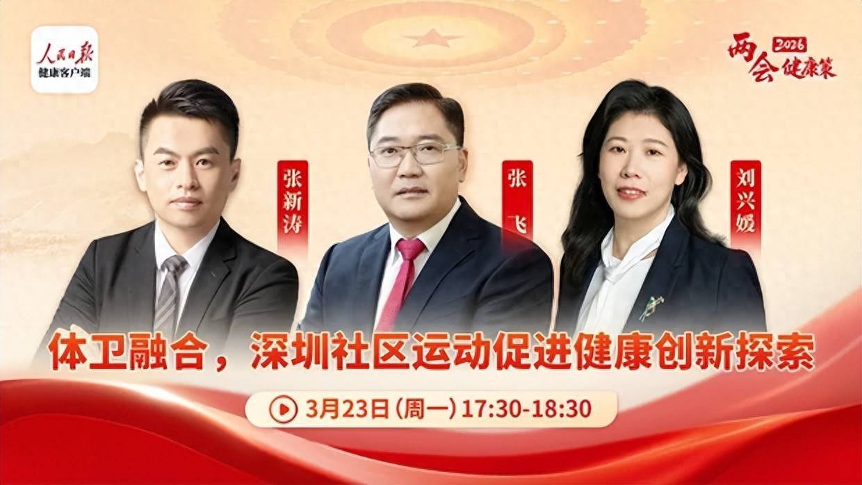 3月23日,在人民日报健康客户端“2026两会健康策”直播节目中,深圳市医院协会医联体建设与发展分会会长、南山区医疗集团总部总院长张飞,北京大学深圳医院运动医学与康复医学中心主任张新涛,北京大学深圳医院运动医学与康复医学中心副主任医师刘兴媛,共同探讨深圳如何将“运动促进健康”的理念转化为基层实践。