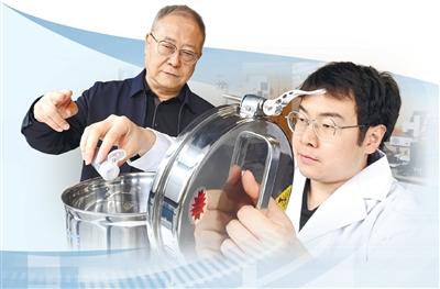 刘加平(左)在指导学生进行混凝土配料比实验。人民日报记者 贾丰丰摄